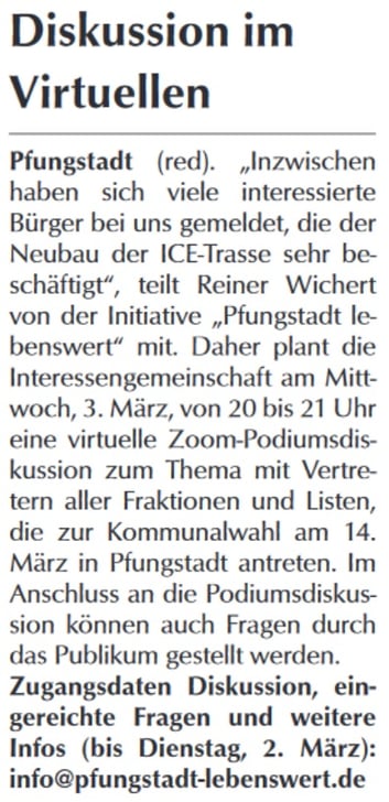 Pressemitteilung in der Pfungstädter WOCHE, Ausgabe KW 8, Seite 5